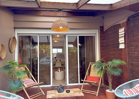 - Terrasse privée aménagée avec salon de jardin, idéale pour les petits-déjeuners au soleil ou les apéros en soirée